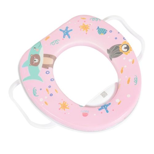 A kétoldali kapaszkodók extra biztonságérzetet biztosítanak, így a gyermek önállóbban használhatja a WC-t. A vidám, gyerekbarát mintás pink design ösztönzően hat, megkönnyítve az átmenetet a bili és a hagyományos WC között.