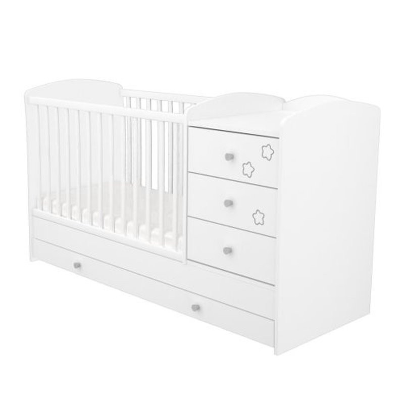 Timba Félix 60×120 cm kombinált kiságy 3 fiókkal – fehér/csillagos, pelenkázós és junior ággyá alakítható kivitel