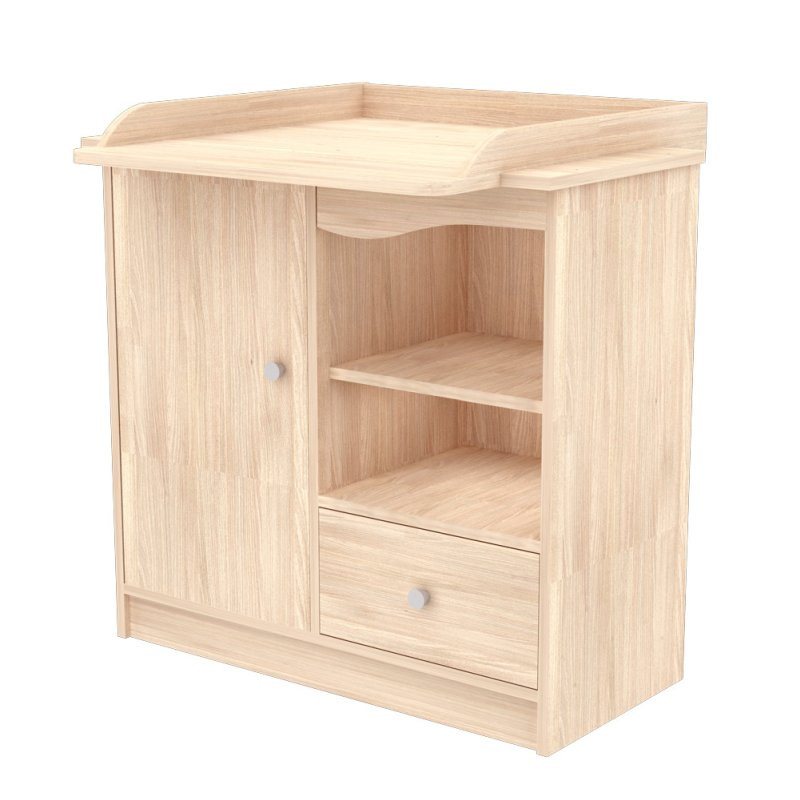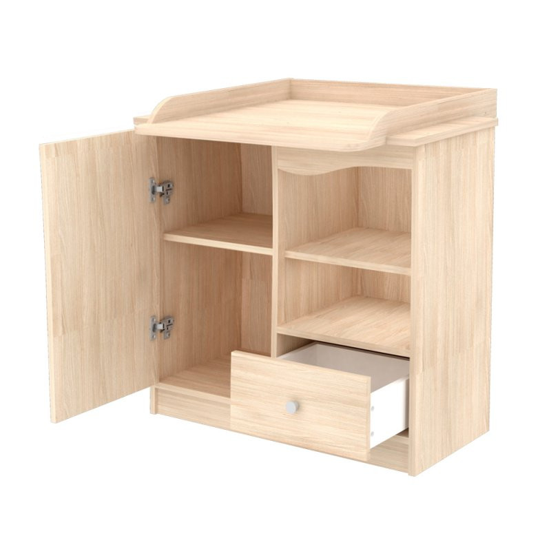 Helytakarékos, jól pakolható Timba Niki pelenkázó komód eltolható feltéttel. Kényelmes pelenkázási felület, nagy tárolókapacitás és meleg borostyán megjelenés a rendezett babaszobáért.